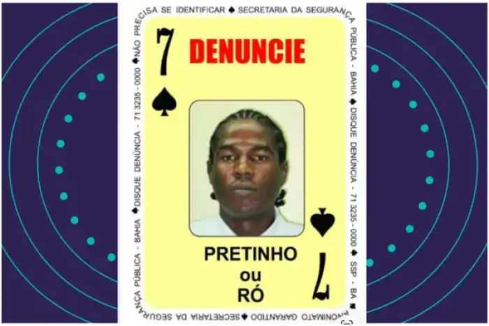 Uma operação da Polícia Militar da Bahia resultou na morte de um ex-integrante do Baralho do Crime da Secretaria de Segurança Pública (SSP-BA), nesta segunda-feira (6), em Mata de São João, na Região Metropolitana de Salvador. Identificado pelo apelido "Pretinho", Rogério Reis dos Santos, que ocupava a carta "7 de Espadas" morreu após confronto com o Batalhão de Choque.